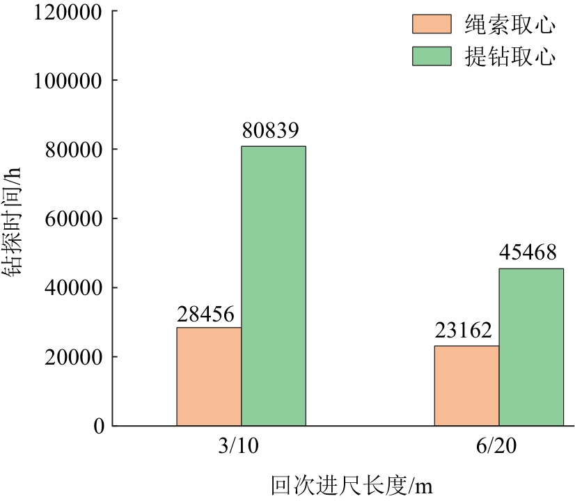 摘要:为提高深孔与特深孔钻探效率,本文根据钻探工艺时间分配建立了钻探时间利用率模型,并结合该模型定量分析了13000 m特深孔钻探中绳索取心与提钻取心两种工艺下各因素对钻探时间的影响。分析表明,无论采用绳索取心还是提钻取心工艺,回次进尺长度均是影响钻探时间的首要因素,但其后各影响因素的排序存在差异:前者依次为钻头寿命、立根长度及起下钻速度,后者则为立根长度、起下钻速度及孔口坐卡与拧卸时间。研究进一步证实,绳索取心钻进效率显著优于提钻取心,但通过优化回次进尺长度等关键参数可有效缩小二者间的差距。本研究揭示了特深孔钻探时间的关键影响因素及优化路径,为工艺方法评价和钻进效率提升提供了理论依据。