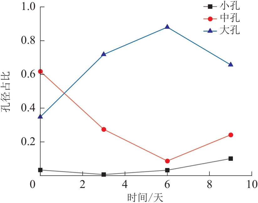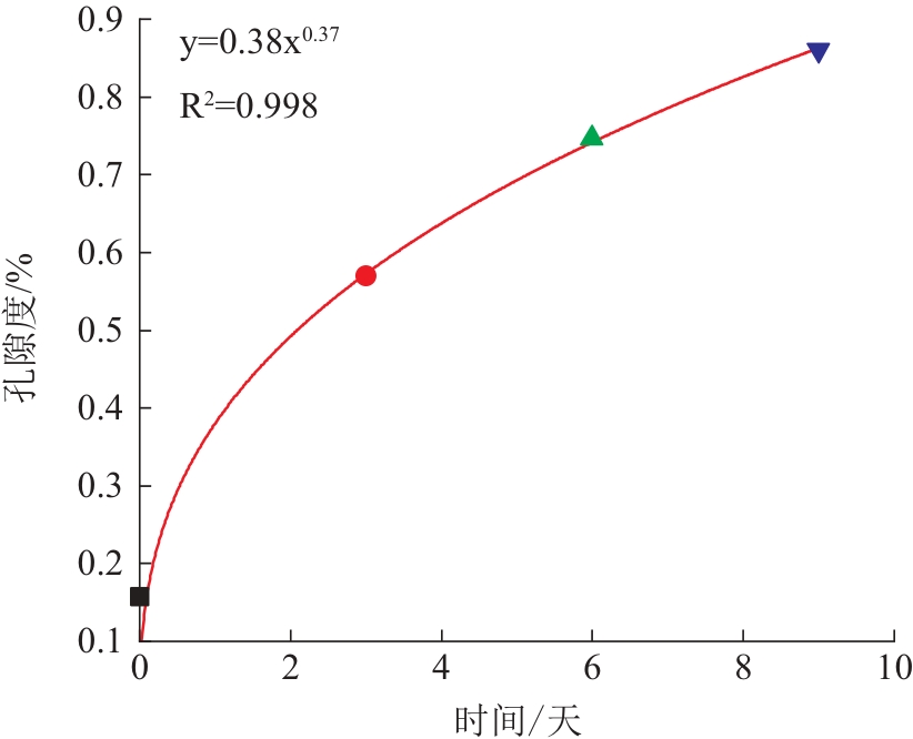 摘要:干热岩开采过程中的水岩作用是影响储层长期稳定的关键因素。针对传统实验方法难以同时兼顾“长期效应”与“试样完整性”的难题,本研究自主研发了一套高温高压水岩作用模拟装置,以酸性溶液为加速介质,对花岗岩岩样开展了3、6、9 d的动态作用实验。结合核磁共振、热常数分析及力学测试,系统揭示了酸性环境下花岗岩孔隙结构及热-力学性能的协同劣化机理。结果表明:酸性水-岩作用导致花岗岩孔隙度非线性剧增(9 d内增幅448%),孔径由小孔主导向中、大孔调整;孔隙结构的改变引发导热系数与单轴抗压强度显著衰减,9 d内分别降低8.63%和33.19%,二者演化趋势高度一致。本研究成功构建了实验室短周期加速模拟与工程长期演化行为的定量关联,为精准预测干热岩储层服役期间的物理力学行为、评估储层稳定性,进而保障地热资源安全高效开发,提供了关键的实验依据和理论支撑。