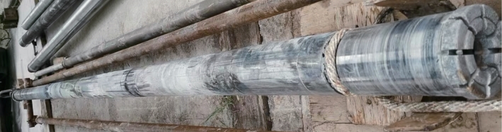 摘要:为解决深埋输水隧洞勘察中传统垂直孔勘察效率低、定向钻具无法实现连续取心的问题,基于绳索取心与定向钻进技术,研制了新型定向钻进连续取心钻具,并搭建室内钻进试验平台,对钻具的定向造斜和连续取心性能进行了验证。结果表明:该钻具性能稳定,能够实现定向钻进与高质量连续取心,实际造斜能力达3.50°/30 m,与理论计算值基本吻合,岩心采取率高达93%~98%,岩石质量指标达80%~91%。本研究为深埋长隧洞工程勘察提供了一种高效、可靠的技术方案,对推动定向钻进连续取心技术的发展具有重要意义。
