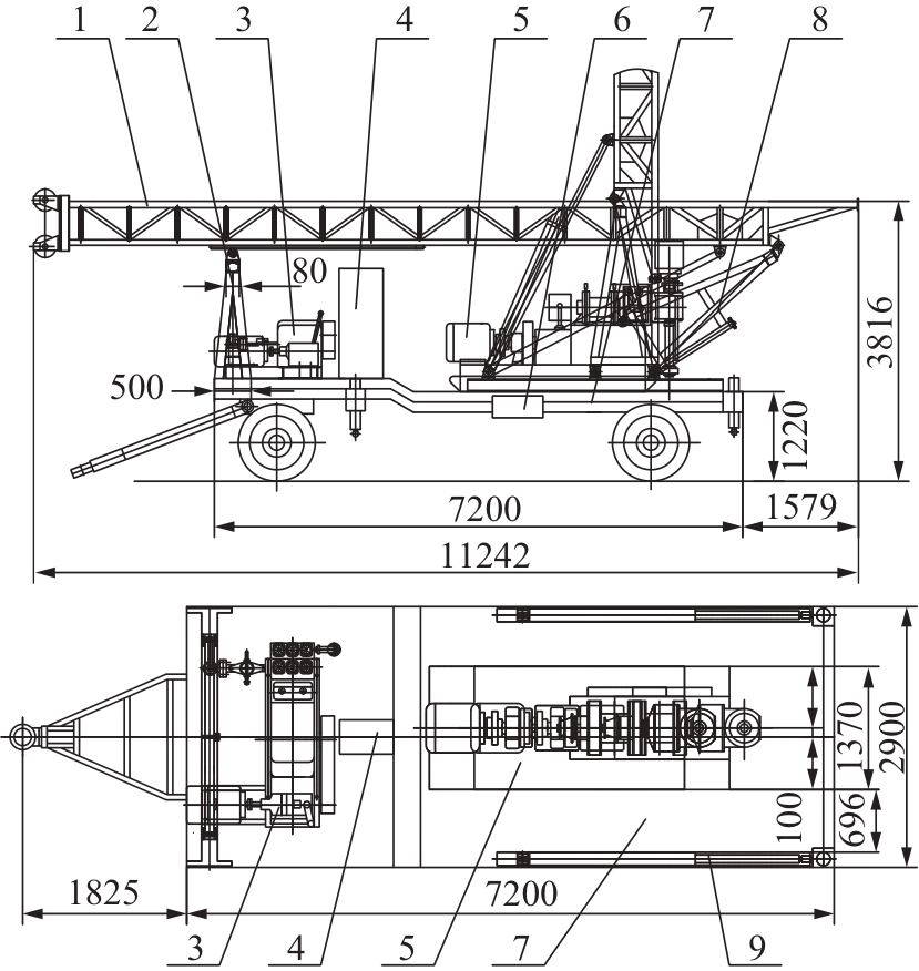 摘要:为探明小秦岭金矿田深部成矿规律,在地质条件复杂的小河断裂带部署了一口3500 m科学钻孔。施工面临断层泥缩径、破碎带坍塌、高地应力卡钻等严峻挑战,孔内事故频发,传统钻探技术难以满足要求。本文介绍了XD-40DB型交流变频顶驱式岩心钻机的成功应用,依托其智能化集成控制、18 m长行程给进、精准动力调控等核心技术优势,结合优化的五开钻孔结构、多套针对性冲洗液体系及精细化参数调控,形成了一套适用于特深孔复杂地层的综合施工技术。该技术有效克服了孔壁失稳和卡钻等难题,终孔孔深3491.90 m,平均岩心采取率97.18%,圆满完成地质任务。研究成果不仅为小河断裂控矿机制研究提供了关键地质数据,更验证了顶驱式岩心钻机在深部复杂地层勘探中的卓越性能与核心支撑作用,为我国同类特深孔钻探工程提供了重要的技术示范和实践经验。