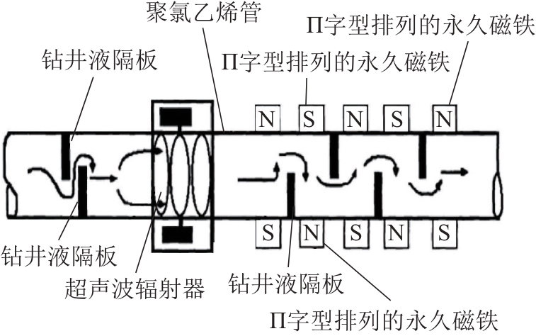 摘要:钻井液是钻探工程的核心介质,其净化效率直接影响钻进效率、钻井质量与生态环境。针对岩屑净化难题,俄罗斯科研团队提出了超声波与永久磁场协同净化钻井液及岩屑回收利用技术。通过理论分析建立了磁化条件下颗粒沉降动力学模型,设计了集成超声波辐射器与П字型磁铁的闭环处理装置,并开展了实验室与现场试验。结果表明:该技术能促使钻井液中岩屑颗粒形成稳定的“集群结构”,显著提升其沉降速度,有效改善钻井液的流变性能,滤失量降低50%,黏度提高20%,岩屑沉淀率达30%;岩屑经焙烧可制成压裂支撑剂,实现资源化利用。研究成果为解决钻井液净化与岩屑污染问题提供了创新技术路径,对推动钻探工程绿色化具有重要参考价值。